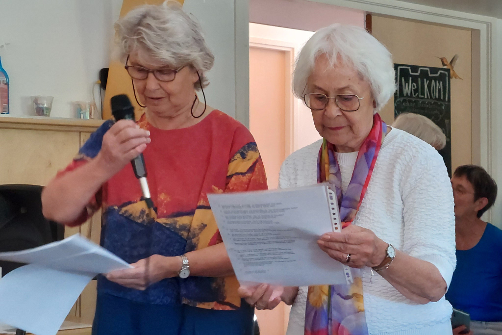 Tijdens het feestje (want zo mogen we het wel noemen) werden onze teruggetreden stuurgroepleden Rita de Boer en Carolien Polderman eventjes in het zonnetje gezet en stonden we een moment stil bij het in de achterliggende coronatijd overleden stuurgroeplid, Jan de Bruijne.